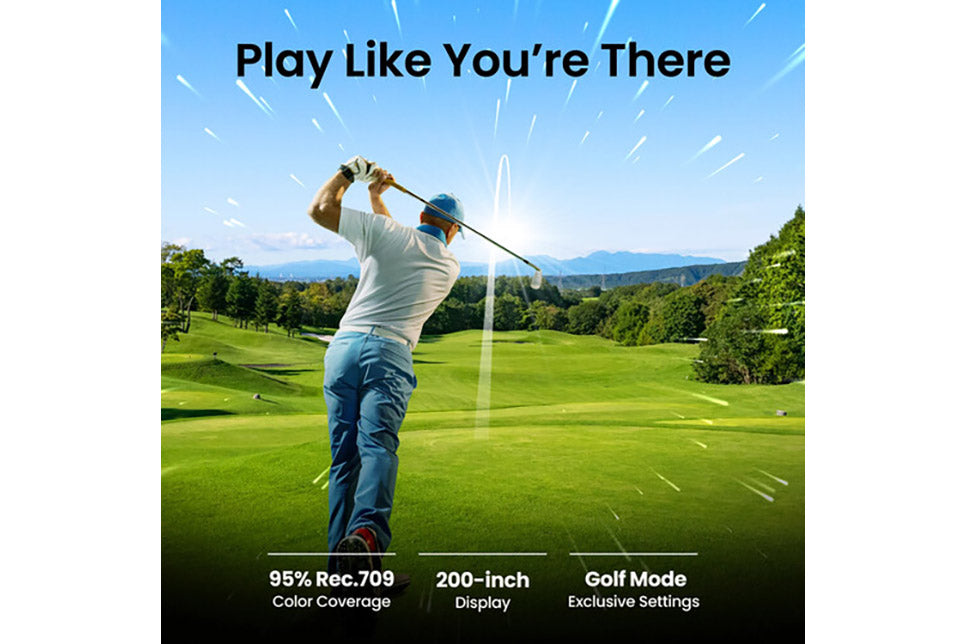With automatic adjustment capabilities, it quickly aligns to your impact screen, making it perfect for fast and hassle-free golf simulation setups. The projector features a specialized Golf mode that delivers realistic visuals of grass and sand, providing an immersive experience.